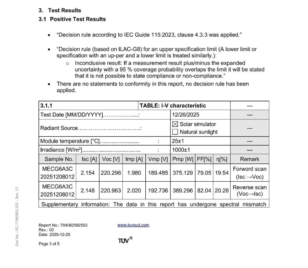 近期,脉络能源自主研发的 1.2m×1.6m玄玉系列-刚性钙钛矿光伏组件通过 TÜV 南德权威检测认证,全面积能量转化效率达 20.28%,创造世界纪录。标志着我国在大尺寸钙钛矿光伏技术领域实现关键性跨越,进一步验证了脉络能源自主研发路线的可行性与先进性。